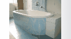 Die Wanne wurde mit einer schwarz-gerasterten Fliese belegt.